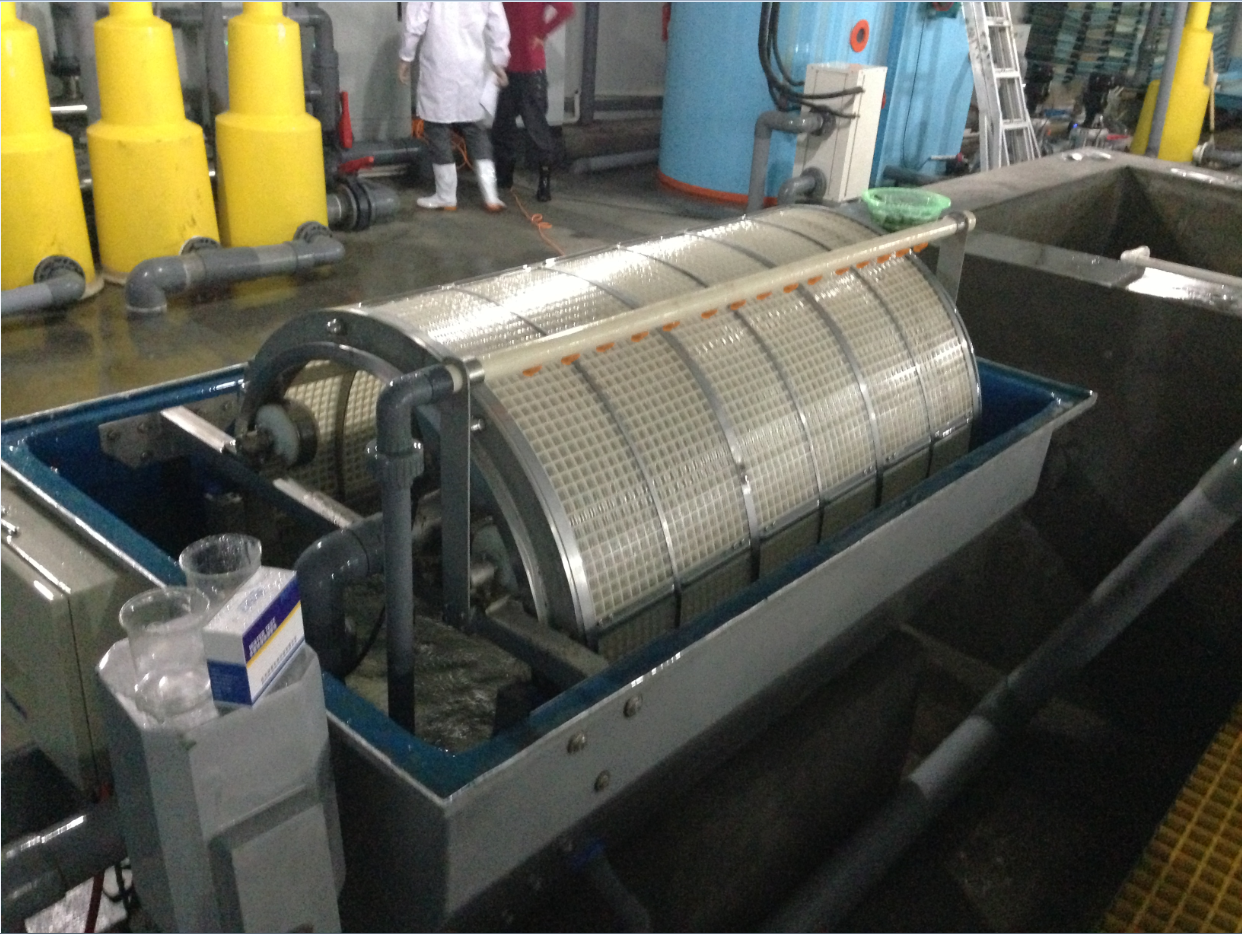 滾筒機械過濾機可以處理大量的廢水卻使用較少的能量。操作系統非常簡單,在循環水系統中,養殖池出水進入到滾筒過濾機,大于網孔的懸浮固體將保留在滾筒內,導致水位上升觸動傳感器,滾筒緩慢轉動,自動反沖洗泵啟動,分離出固體,并通過滾筒頂部的管道排出。