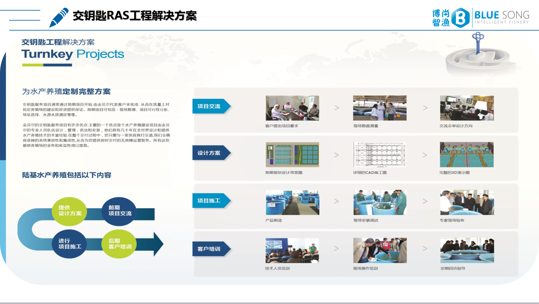工廠化循環水養殖是集成水生生物技術、水產工程技術、現代信息技術與漁業經營管理技術為一體的現代化漁業生產系統,通過設施和裝備的作用,為水生生物提供最佳的生長環境,并進行集約化、標準化、規范化的現代化生產。工廠化循環水養殖是擺脫傳統養殖業受自然環境束縛,通過水溫調控、水質過濾殺菌、生物膜降解、綜合增氧、循環利用和水質在線監測等多種技術手段,使養殖水產品處于一個相對可控的生態環境中,實現海水、淡水優質養殖品種的高密度健康養殖,具有“高產、優質、生態、安全、節能減排”的顯著特點,是我國水養殖業由粗放型養殖模式向現代化工業化養殖模式轉變的必由之路,是水產養殖業走向集約化、規模化、現代化道路的必然選擇,代表著未來水產養殖業,特別是科技創新與先進生產力發展的重要方向。
