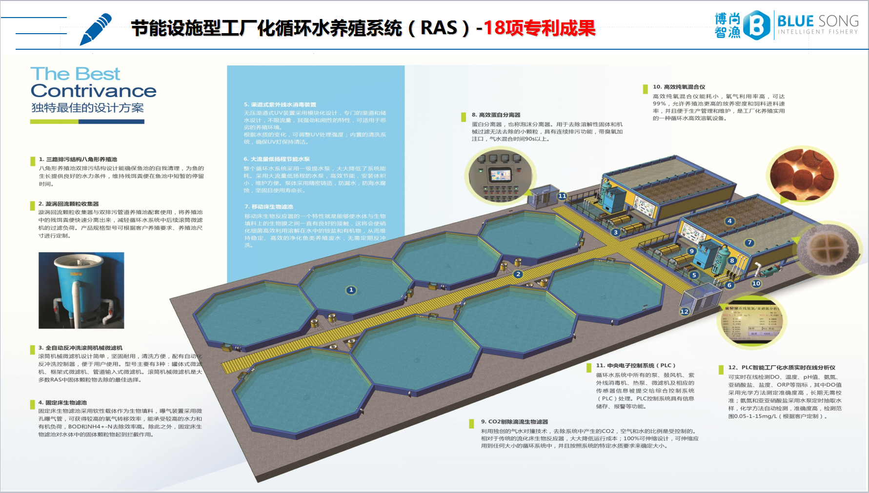 (1) 整個循環水養殖系統穩定可靠,實現節約用水、節地、節能(養殖用水量減少120~1600倍);