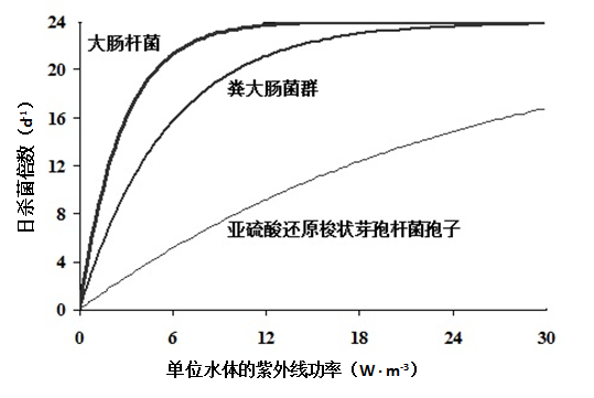 (1)在一個循環水系統中,紫外線輸入功率、循環水流速和水的UV254的透射率是影響紫外線殺菌效果的3個重要因素。單位水體的紫外線功率越大,殺菌效果越好;水體通過紫外燈殺菌器的流速越大,總殺菌效果加大;UV254透射率越大,殺菌效果越好;